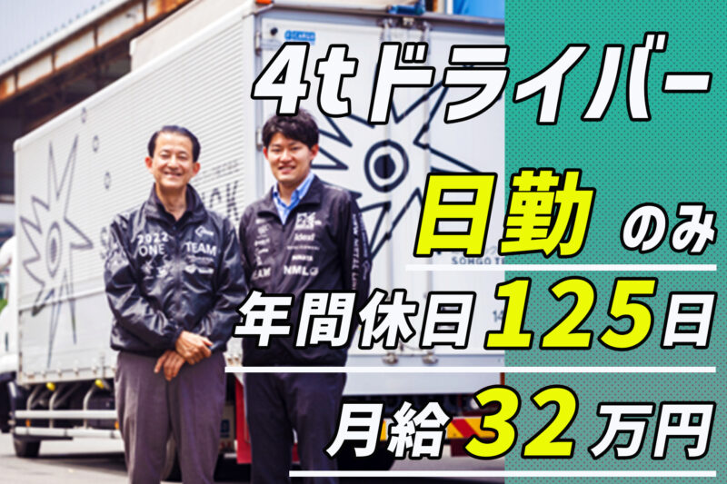 4t冷凍食品配送/早朝/手積み手降ろしなし/残業少なめ/月給38万円可能